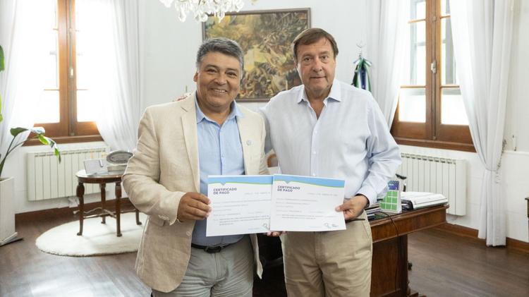 El Gobernador de Río Negro, Alberto Weretilneck, le entregó al intendente de Comallo, Raúl Hermosilla, dos aportes por más de $33.400.000 para mejorar las condiciones edilicias de la Escuela Primaria N° 73 y para finalizar la construcción de 12 viviendas.
