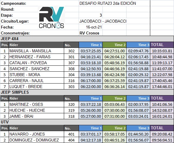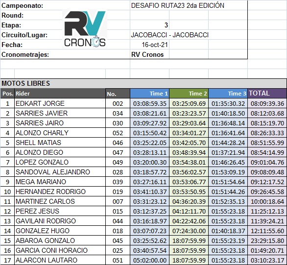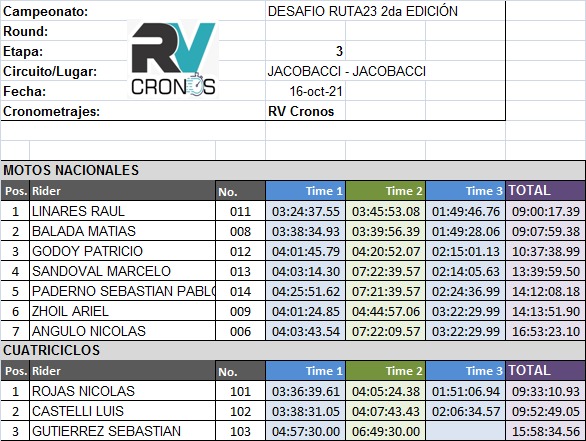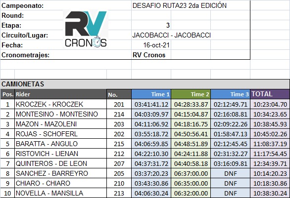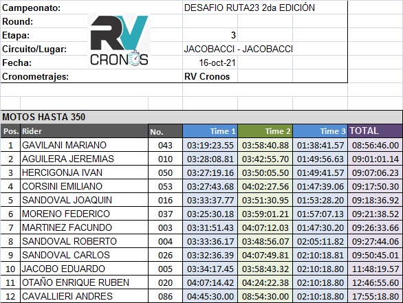 A continuación adjuntamos los tiempos extra oficiales y fotos de hoy.